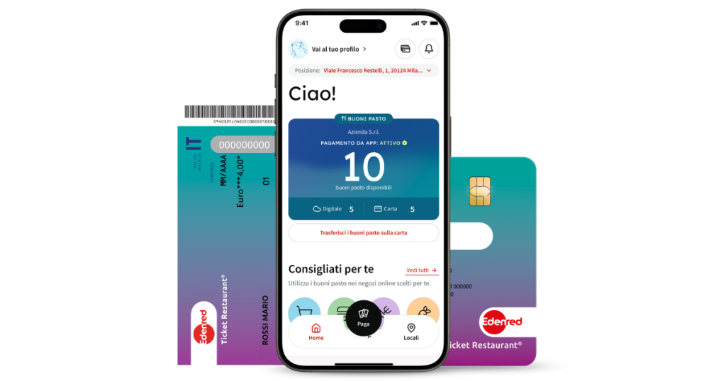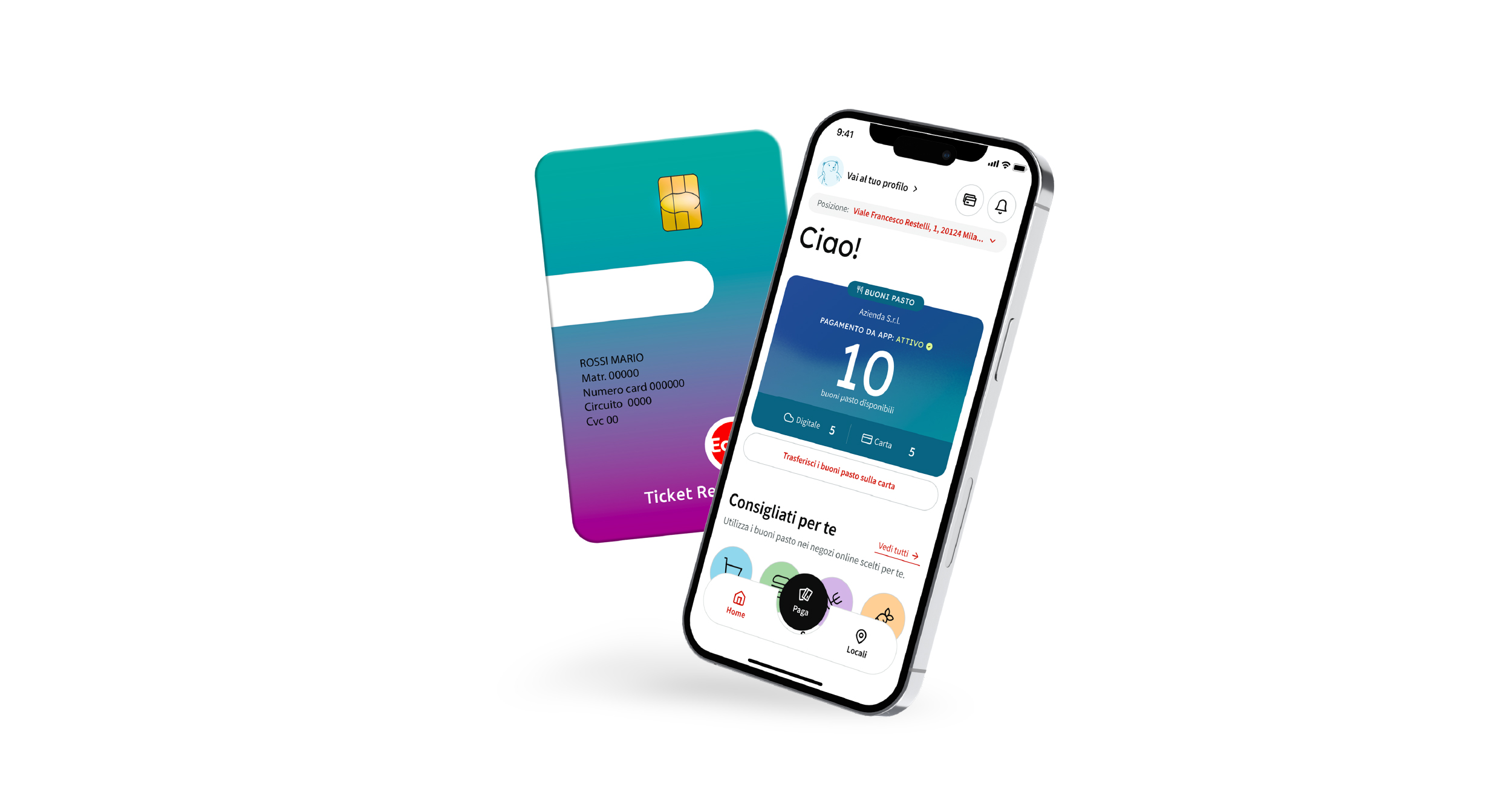 La soluzione 100% digitale, senza carta elettronica: basta scaricare l’app Ticket Restaurant® sullo smartphone (funziona anche su più dispositivi!) e utilizzarla in totale sicurezza (con credenziali personali, PIN dispositivo e dati biometrici).