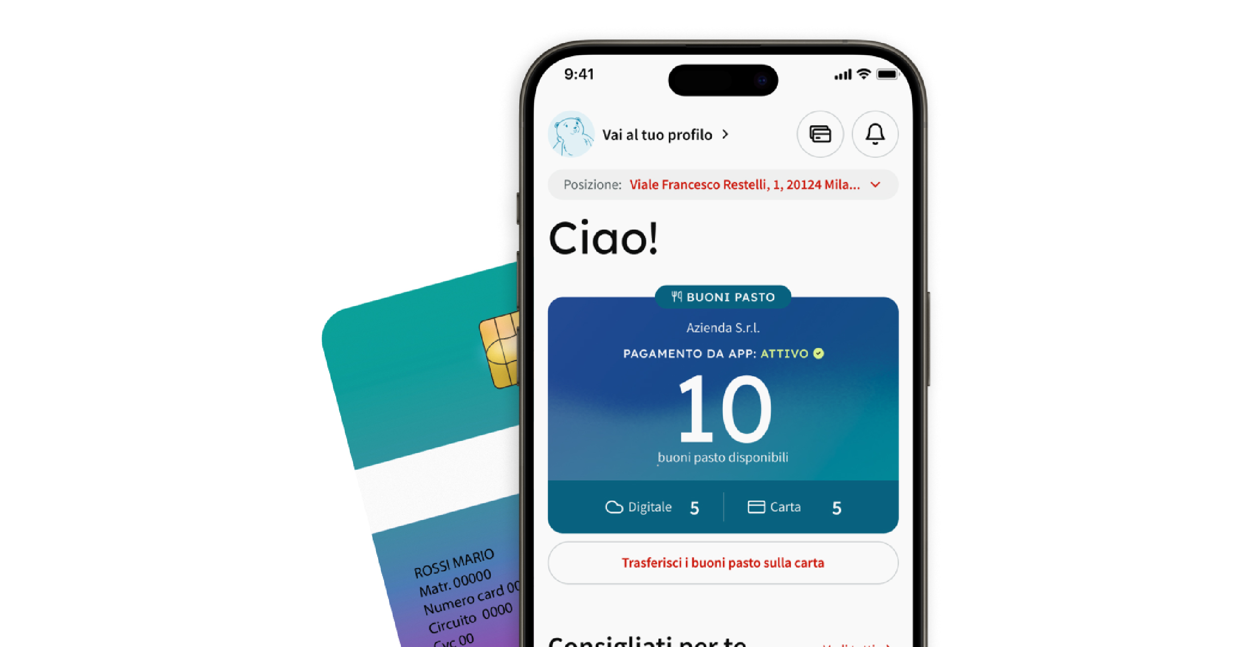 I buoni pasto sono caricati su una carta ricaricabile che può essere bloccata in modo immediato in caso di furto o smarrimento. Possibilità di utilizzo anche da mobile e per il food delivery, attivando la funzionalità Pagamento da app e online.