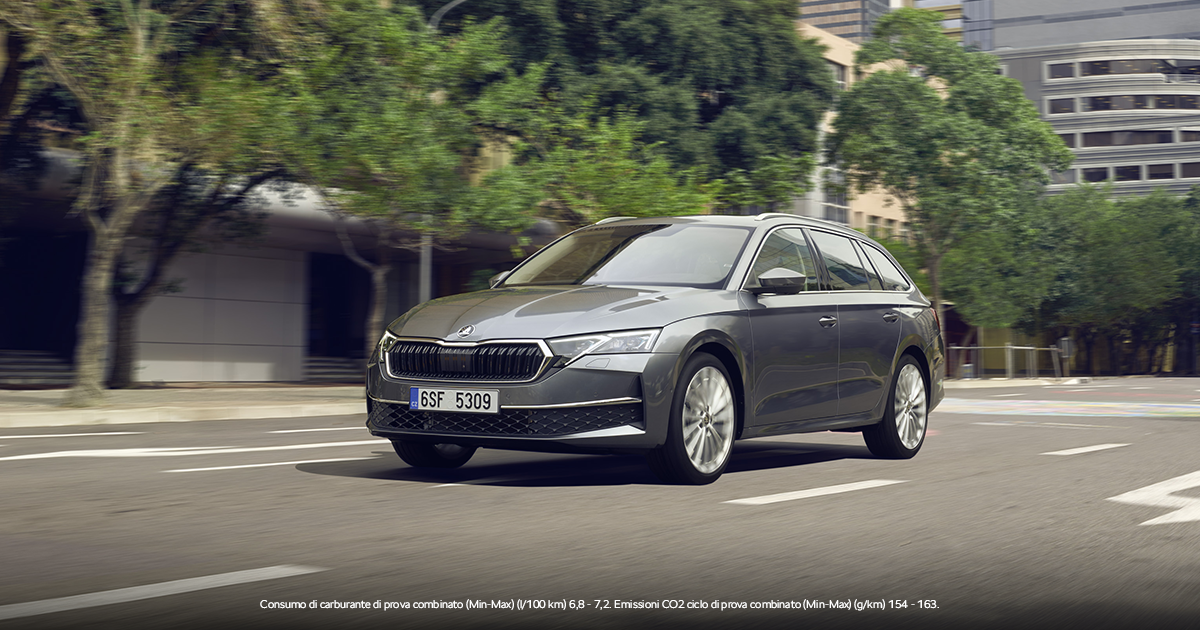 Octavia Wagon 1.5 TSI m-HEV 115cv Executive DSG – Anticipo di 4702€ – Canone di 315€ – Durata di 36 mesi e 60.000 Km totali. Offerta valida fino al 31/12/2025. Il canone comprende: Copertura assicurativa RCA massimale 26.000.000 € senza franchigie – Tutela conducente con massimale di 77.500 € – Tutela Legale – Limitazione di responsabilità per Incendio/furto con penale del 10% min. 250 € – copertura Danni, Atti vandalici ed Eventi naturali con penale a 1000 € – Immatricolazione e messa su strada – Manutenzione ordinaria e straordinaria presso tutta la rete Ufficiale Skoda – Soccorso stradale e traino 24/24 in Italia ed Europa – Accesso al portale dedicato ai nostri Clienti. Offerta valida per cliente Partita IVA e Società. Gli importi fin qui indicati sono da considerarsi IVA esclusa. Salvo approvazione Škoda Financial Services.